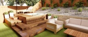 View projectsBeautiful 3D Design featuring new Deck, New Outdoor Kitchen, New Fence, New Hot Tub Installation and more for Landscaping Remodel.